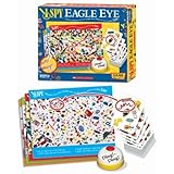 Find a picture with your eagle eye. Ring the bell and play I Spy! Use your eagle eye to spy the object on the game board that matches the object on your card. Each card and board has only one matching item. Be first to ring the bell and you win! For 2 to 4 players.